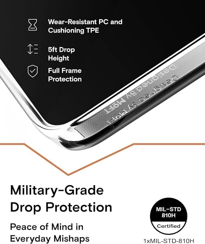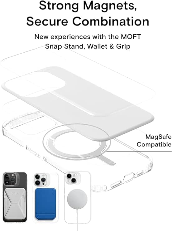 حافظة سناب مع دعم ماج سيف، توفر تثبيتًا مغناطيسيًا محكمًا وزوايا رؤية متعددة. تدعم الشحن اللاسلكي، مع حماية من السقوط وخدوش السطح بصلابة 2H وحواف مرتفعة لحماية الشاشة والكاميرا.
