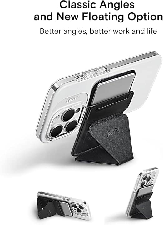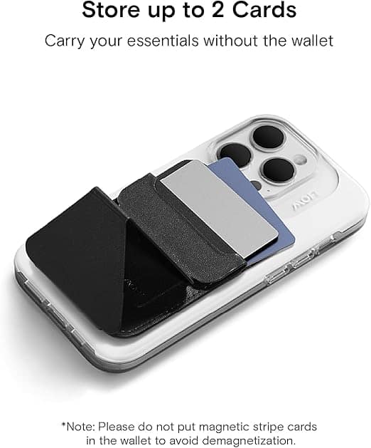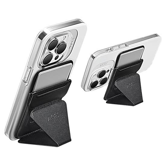 محفظة مغناطيسية رفيعة متعددة الوظائف، تعمل كحامل للهاتف بثلاثة أوضاع عرض: رأسي، أفقي، وعائم. تحمل حتى ثلاث بطاقات بسماكة 5 ملم فقط. مزودة بفصل مغناطيسي سريع، ما يجعلها مثالية للاستخدام والشحن أثناء التنقل.